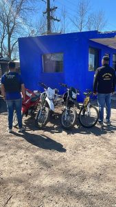 Durante los operativos, la Policía secuestró tres motocicletas (dos Honda XR y una Honda Biz), una bicicleta tipo todo terreno, teléfonos celulares y prendas de vestir.