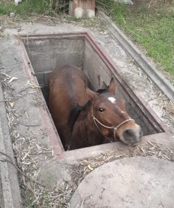 Portada » Los Bomberos rescataron a un caballo que había caído en una fosa