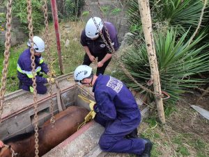 Finalmente, el procedimiento culminó con resultado positivo, logrando rescatar al equino sin que se registraran lesiones de gravedad.
