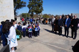 Se conmemoró el 175° aniversario del paso a la inmortalidad del General Don José de San Martín con un acto encabezado por el intendente Eduardo Accastello, realizado en la Explanada San Martín, junto al Puente Alberdi. Participaron de la ceremonia la legisladora Verónica Navarro Alegre, el legislador Alfredo Nigro, el presidente del Concejo Deliberante, Juan Pablo Inglese, y miembros del Ejecutivo y Legislativo local. También estuvieron presentes la fiscal federal María Marta Schianni, el juez de Ejecución Penal Arturo Ferreyra, autoridades judiciales, representantes de fuerzas de seguridad, referentes de instituciones civiles y los intendentes y viceintendentes de las Infancias, Máximo Deulofeu y Mía Avendaño.
